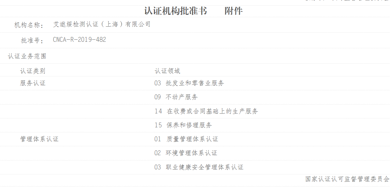 服務(wù)認證:批發(fā)業(yè)和零售業(yè)服務(wù)、不動產(chǎn)服務(wù)、在收費或合同基礎(chǔ)上的生產(chǎn)服務(wù) 、保養(yǎng)和修理服務(wù)