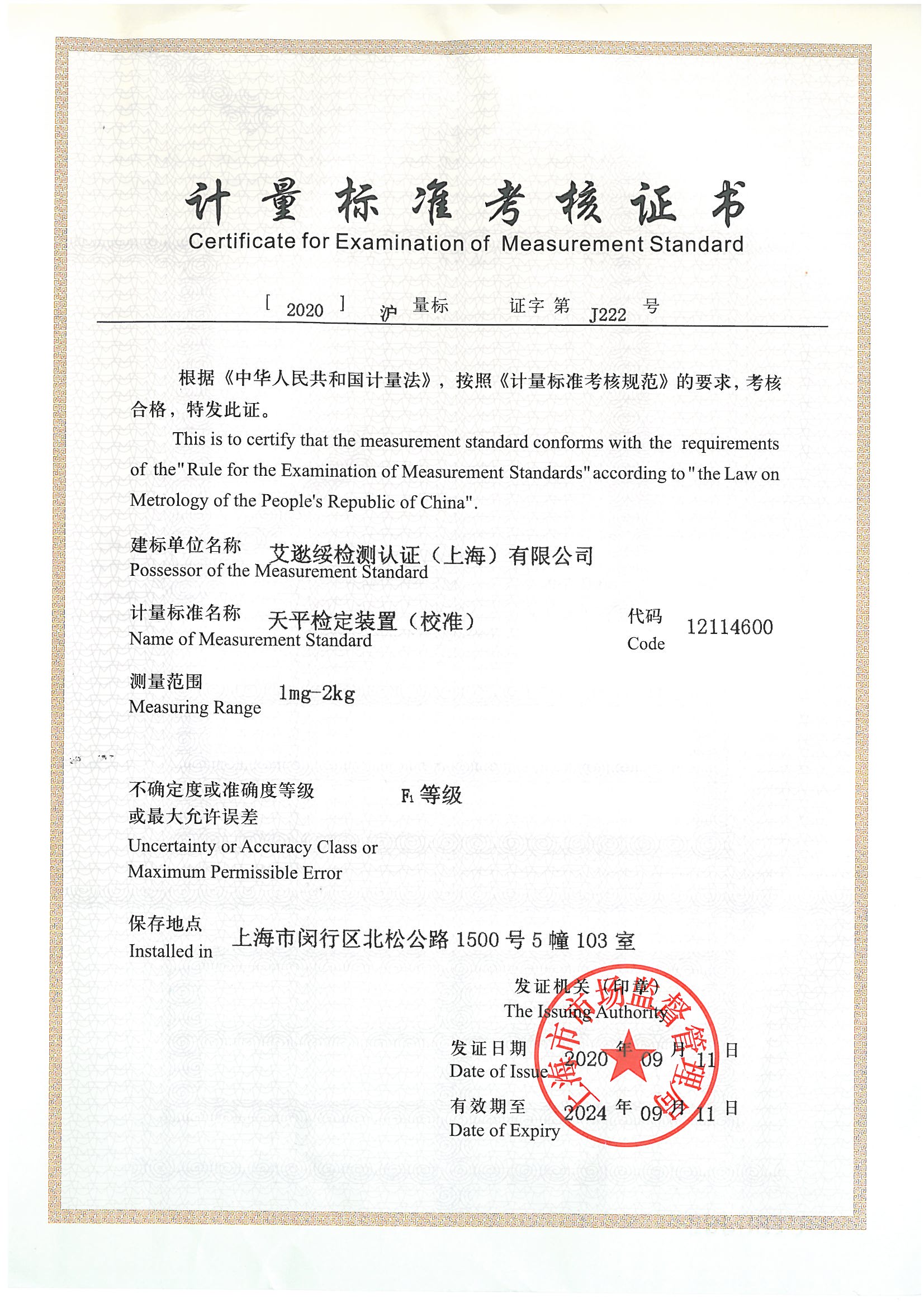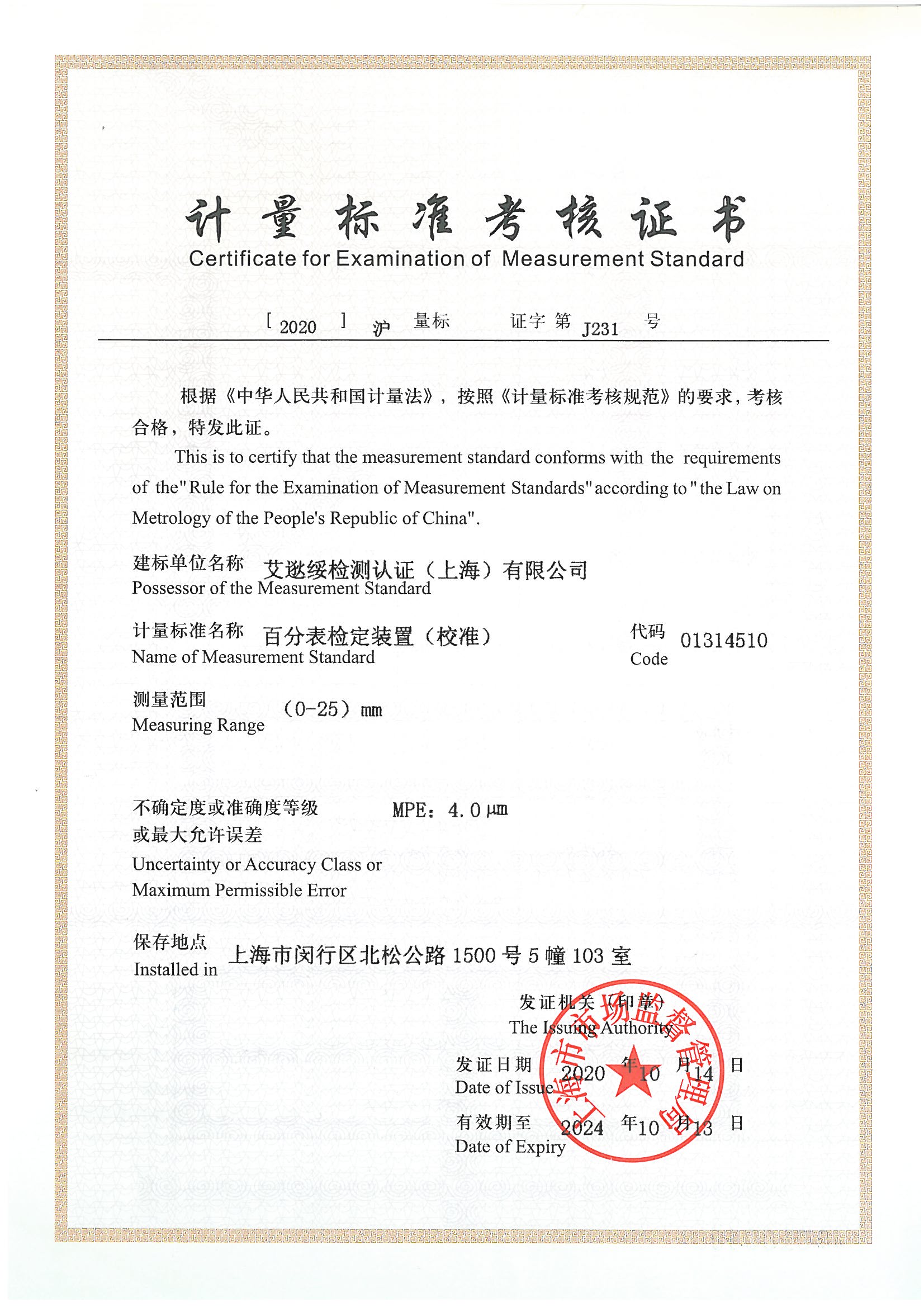 我司順利通過了現(xiàn)場(chǎng)評(píng)審并于2020年10月14日取得了上海市市場(chǎng)監(jiān)督管理局頒發(fā)的電子天平和百分表計(jì)量標(biāo)準(zhǔn)考核證書。證書編號(hào):2020【滬】量標(biāo) 第J222號(hào)、2020【滬】量標(biāo) 第J231號(hào)。